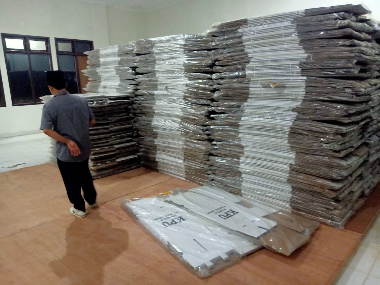 “Jadi pada malam ini kita sudah didatangkan bilik suara, dan memang pengadaannya itu dari KPU RI,” ungkap Ketua KPU Muhidin kepada sejumlah wartawan.