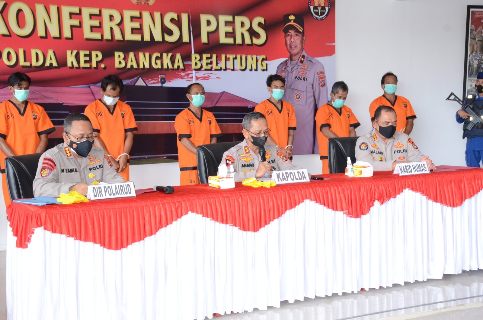 PANGKALPINANG, ERANEWS.CO.ID — Polda Kepulauan Bangka Balitung (Babel) resmi melakukan penahanan sekaligus tetapkan 7 orang tersangka, Selasa (20/07/21).