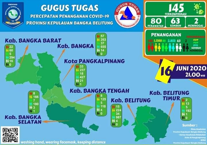 Dengan adanya penambahan satu kasus positif Covid-19 di Kota Pangkalpinang maka kasus terkonfirmasi positif Covid-19 menjadi 145 kasus.