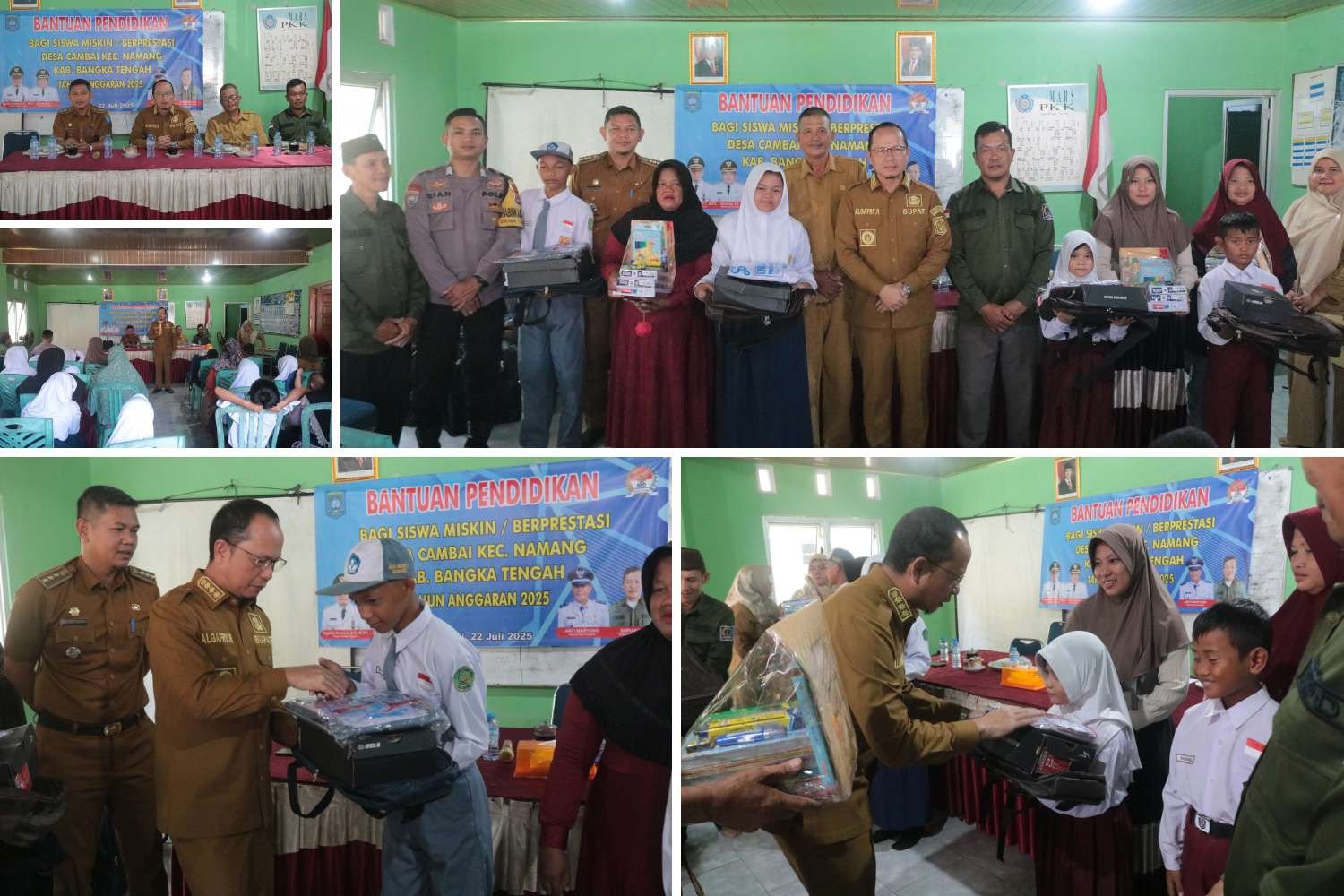 NAMANG, ERANEWS.CO.ID – Sebanyak 35 pelajar dari keluarga kurang mampu dan berprestasi di Desa Cambai, Kecamatan Namang, Kabupaten Bangka Tengah, menerima bantuan perlengkapan sekolah yang disalurkan Pemerintah Kabupaten Bangka Tengah melalui Pemerintah Desa Cambai, Selasa (22/07/2025) bertempat di Kantor Desa Cambai.