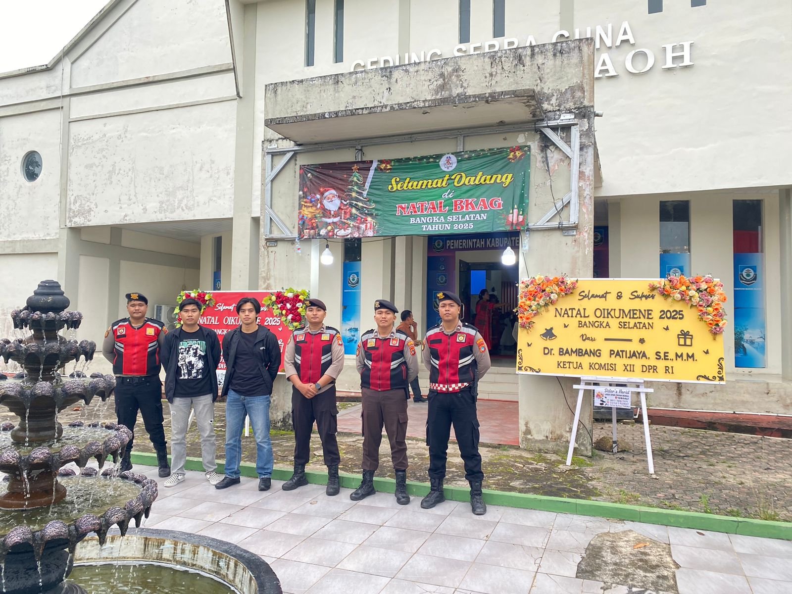 TOBOALI, ERANEWS.CO.ID – Personel Polres Bangka Selatan melaksanakan Pengamanan kegiatan Ibadah & perayaan Natal Oikoumene Badan Kerja sama Antar Gereja (BKAG) Kab. Bangka Selatan di Gedung Serba Guna Junjung Besaoh Bangka Selatan, Sabtu(10/1/2026) sekira pukul 16.30 Wib.