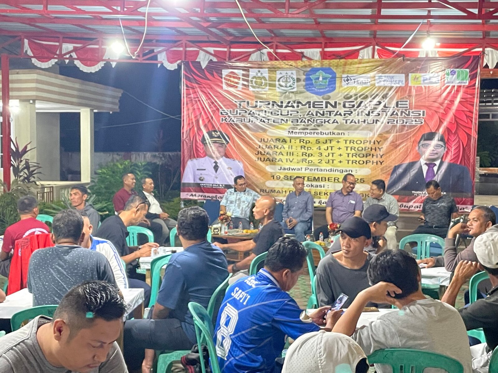 BANGKA, ERANEWS.CO.ID – Dalam rangka untuk menjalin silaturahmi, Pemkab Bangka menggelar Turnamen Gaple Bupati Cup antar instansi di lingkungan Pemkab Bangka 2025 di Rumah Dinas Sekda Bangka, Jumat (19/92025) malam.