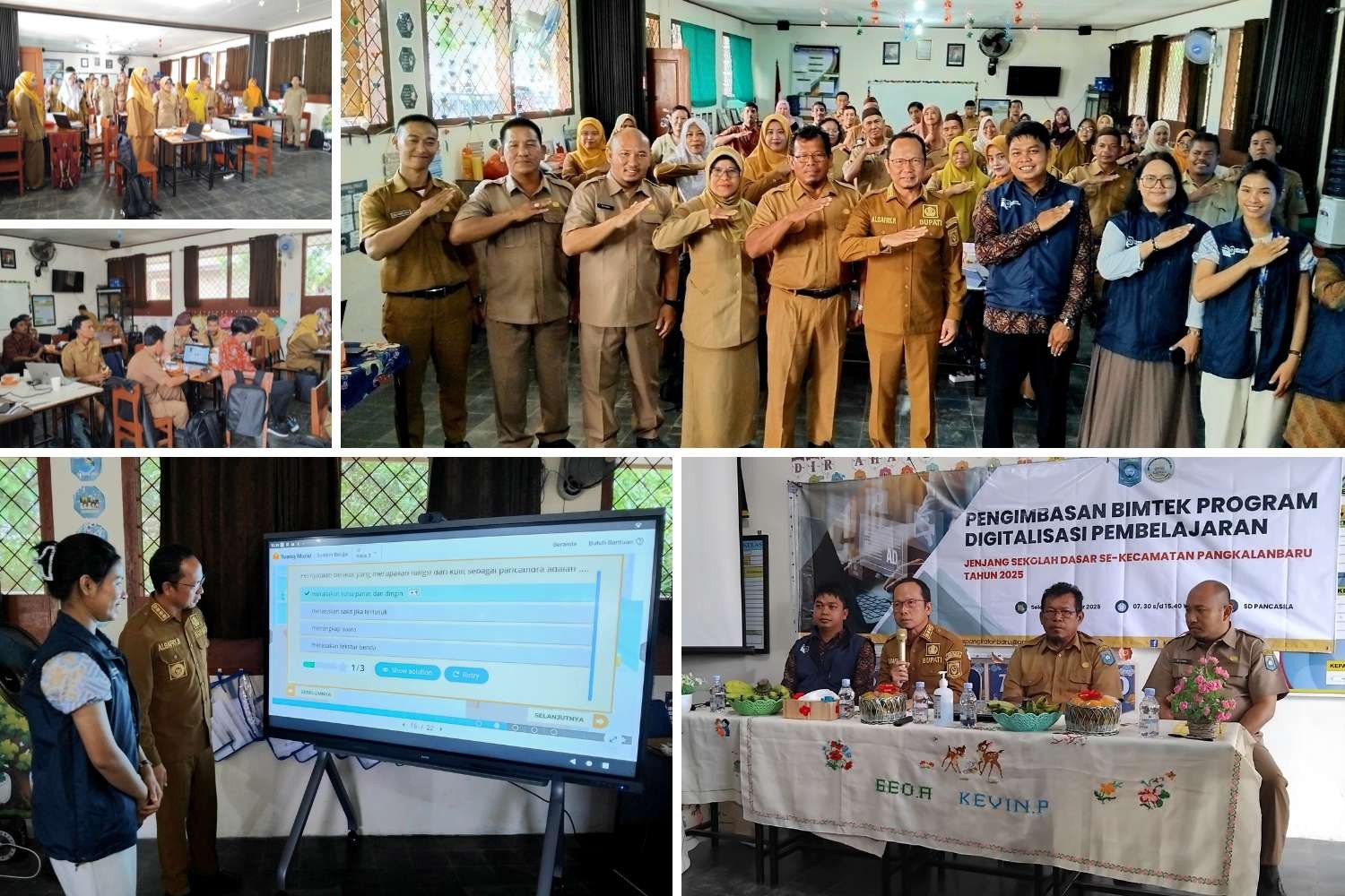 PANGKALANBARU, ERANEWS.CO.ID –Meski hujan deras mengguyur, semangat para tenaga pendidik, baik guru maupun kepala sekolah dari 5 sekolah swasta dan 14 sekolah negeri di Kecamatan Pangkalanbaru, tak surut untuk mengikuti Bimbingan Teknis (Bimtek) Program Digitalisasi Pembelajaran dengan pemanfaatan papan interaktif. Kegiatan ini diselenggarakan di SD Pancasila, Kecamatan Pangkalanbaru, pada Selasa (07/10/2025).