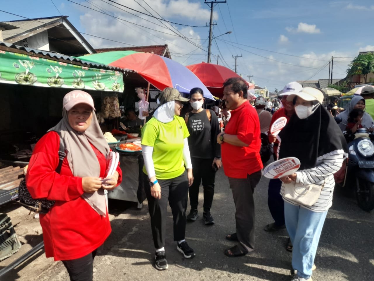 Prof Udin-Cece Dessy-sapaan alrab mereka menyapa masyarakat saat blusukan ke Pasar Kampung Asam, Jalan Irian, Kelurahan Asam, Kecamatan Rangkui, pada Kamis (31/07/2025).
