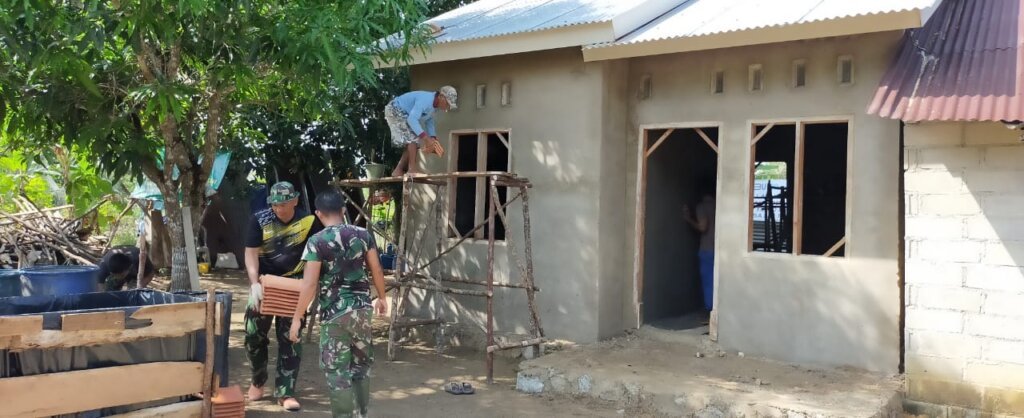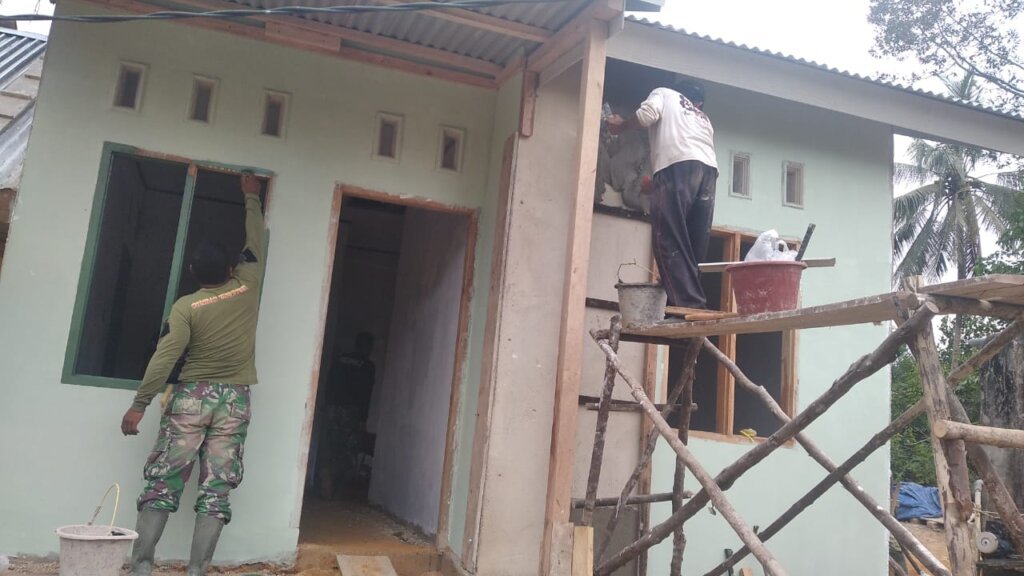 Dandim mengatakan, pengerjaan plaster rumah milik ibu Asma ini hingga kemarin sore sudah mencapai 80 persen dan ditargetkan selesai hari ini.