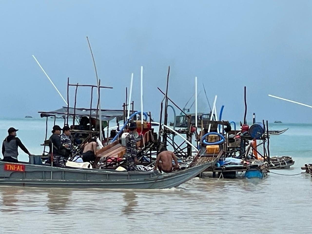 BANGKA, ERANEWS.CO.ID – Jajaran anggota Pos AL Sungailiat melakukan penertiban sekaligus himbauan terhadap pelaku tambang TI sebu dan ponton rajuk manual yang ada di Perairan Pantai Rambak, Sungailiat, Minggu (22/6/2025). Kegiatan penertiban tersebut dipimpin langsung oleh Komandan Posbinpotmar Sungailiat, Peltu TTU Firdaus Abadi.