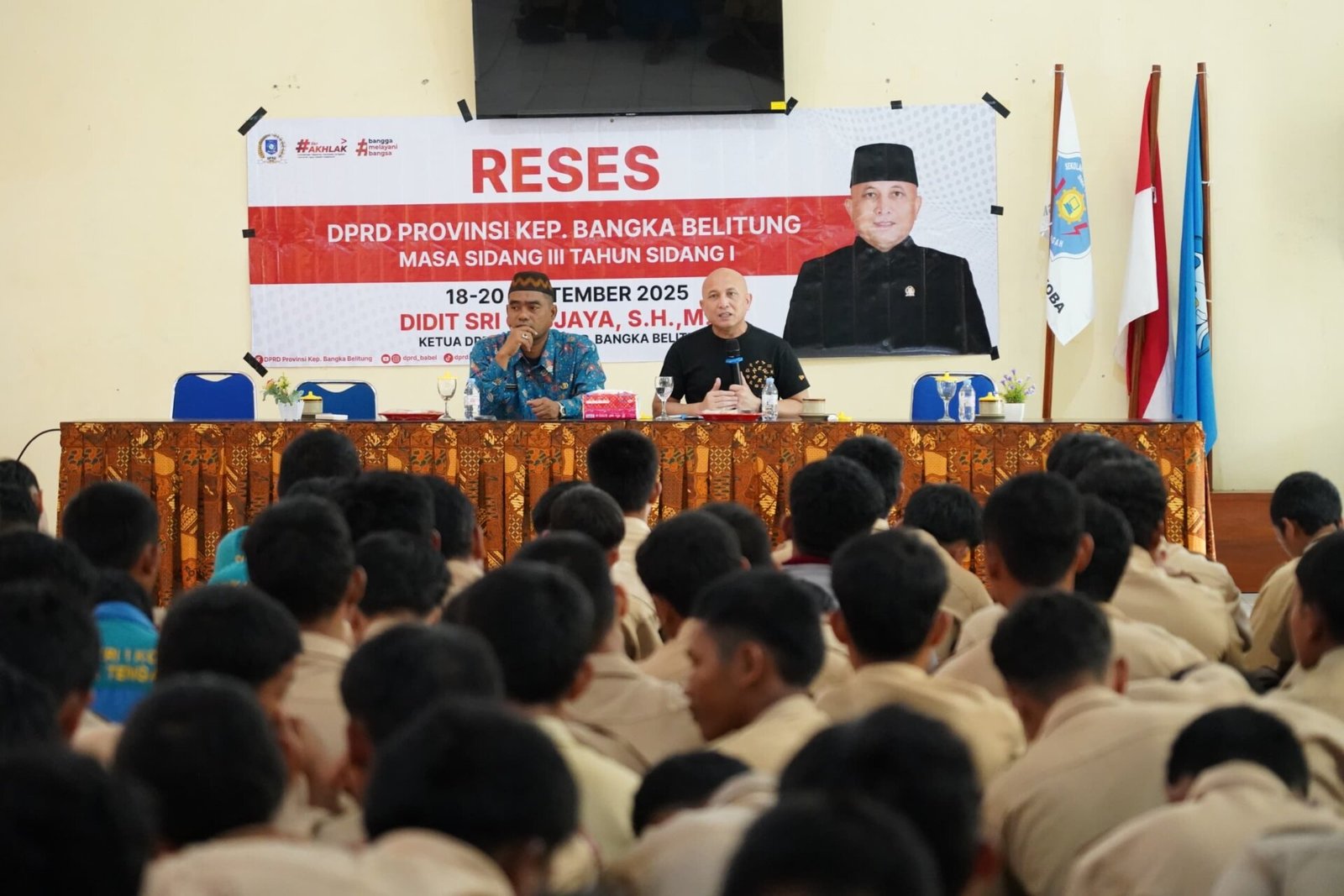 KOBA, ERANEWS.CO.ID – Ketua DPRD Provinsi Kepulauan Bangka Belitung (Babel), Didit Srigusjaya melaksanakan kegiatan Reses Masa Sidang III Tahun Sidang I di SMK Negeri 1 Koba, Kamis (18/9/2025). Dalam kunjungan tersebut, Didit menyerap aspirasi pihak sekolah terkait kebutuhan sarana dan prasarana, hingga pembiayaan penunjang pendidikan.