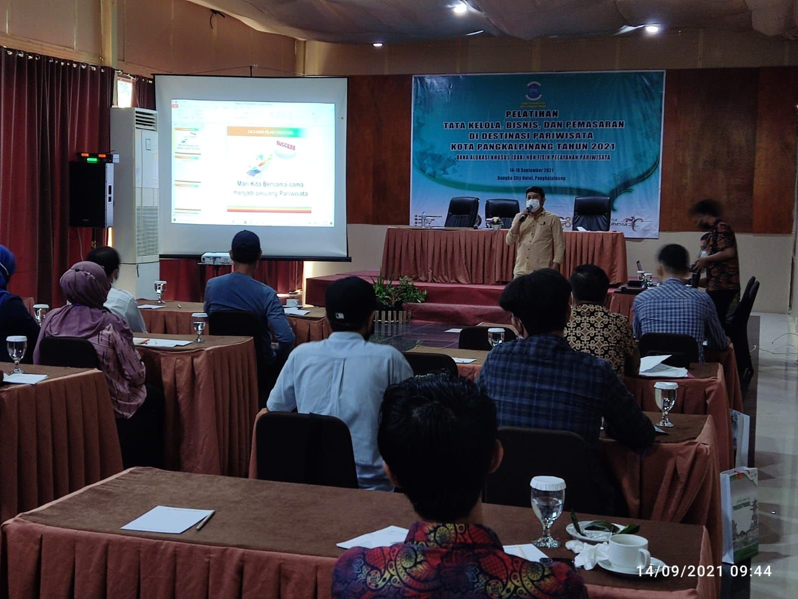 PANGKALPINANG, ERANEWS.CO.ID — Dinas Pariwisata Kota Pangkalpinang melalui Bidang Destinasi Pariwisata dan Industri Pariwisata menggelar pelatihan tata kelola, bisnis dan pemasaran destinasi pariwisata Kota Pangkalpinang, di Hotel Bangka City, Selasa (14/9/2021).