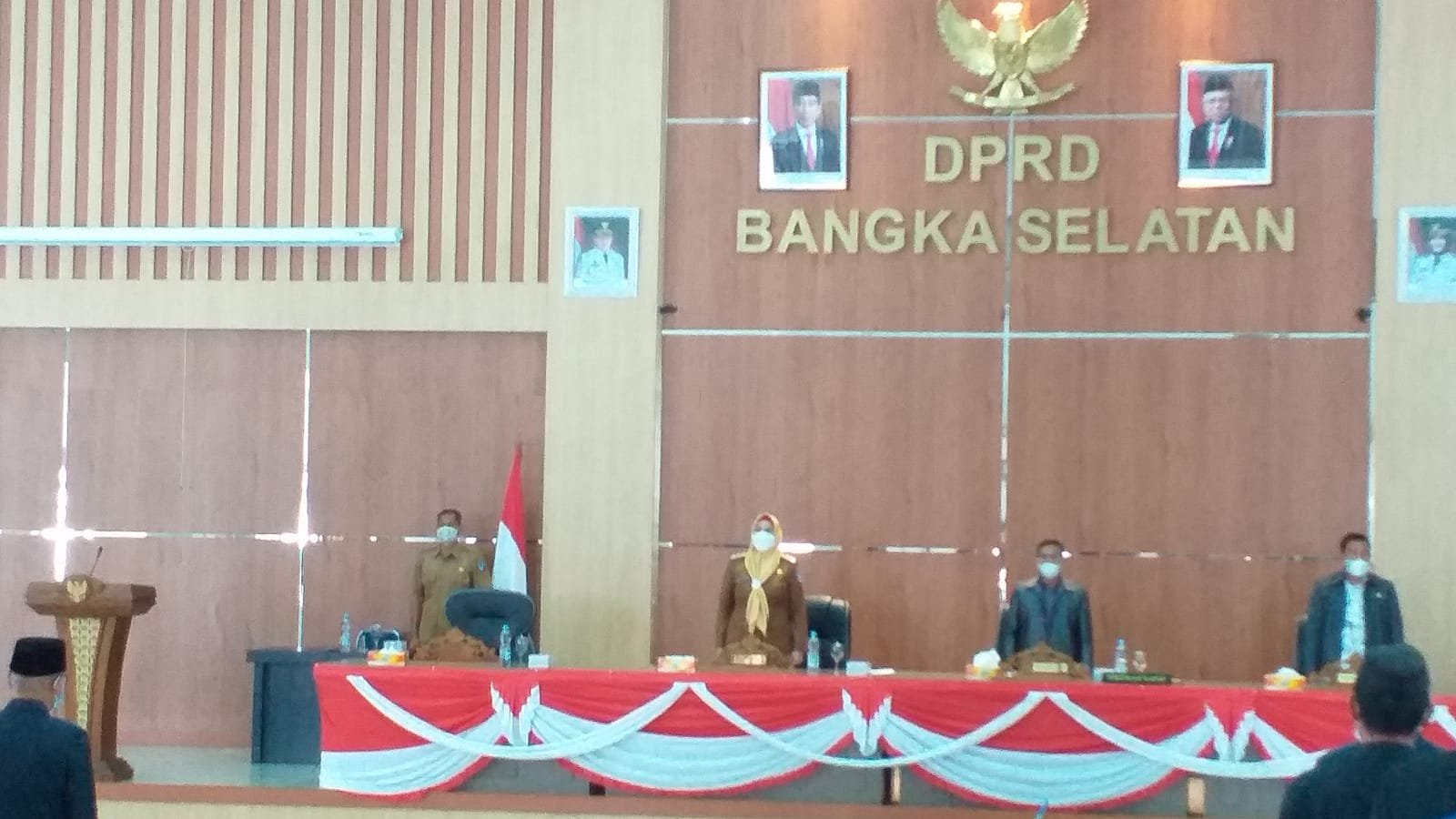 Rapat paripurna tersebut dilaksanakan di Ruang rapat paripurna Junjung Besaoh DPRD Kabupaten Bangka selatan, dan dihadiri juga Forkominda Bangka Selatan, Kepala Cabang Bank Sumsel Babel Toboali, perwakilan Wasprod PT Timah Toboali serta kepala OPD Pemkab Bangka Selatan.