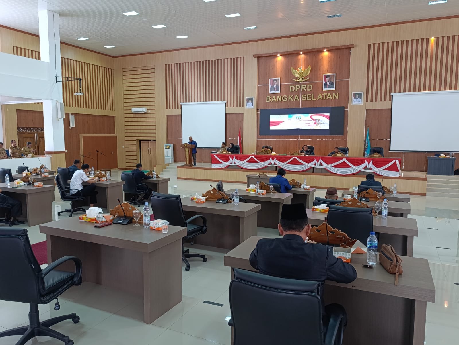 Tak hanya itu, Bupati Bangka Selatan, Riza Herdavid dan Wakil Bupati Bangka Selatan, Debby Vita Dewi bersama Forkopimda Basel, Pj. Sekretaris Daerah (Sekda) Basel, Haris Setiawan, Plt Sekretaris Dewan (Sekwan) Basel, Hamdan dan Kepala OPD Pemkab Basel turut hadir dalam paripurna tersebut.