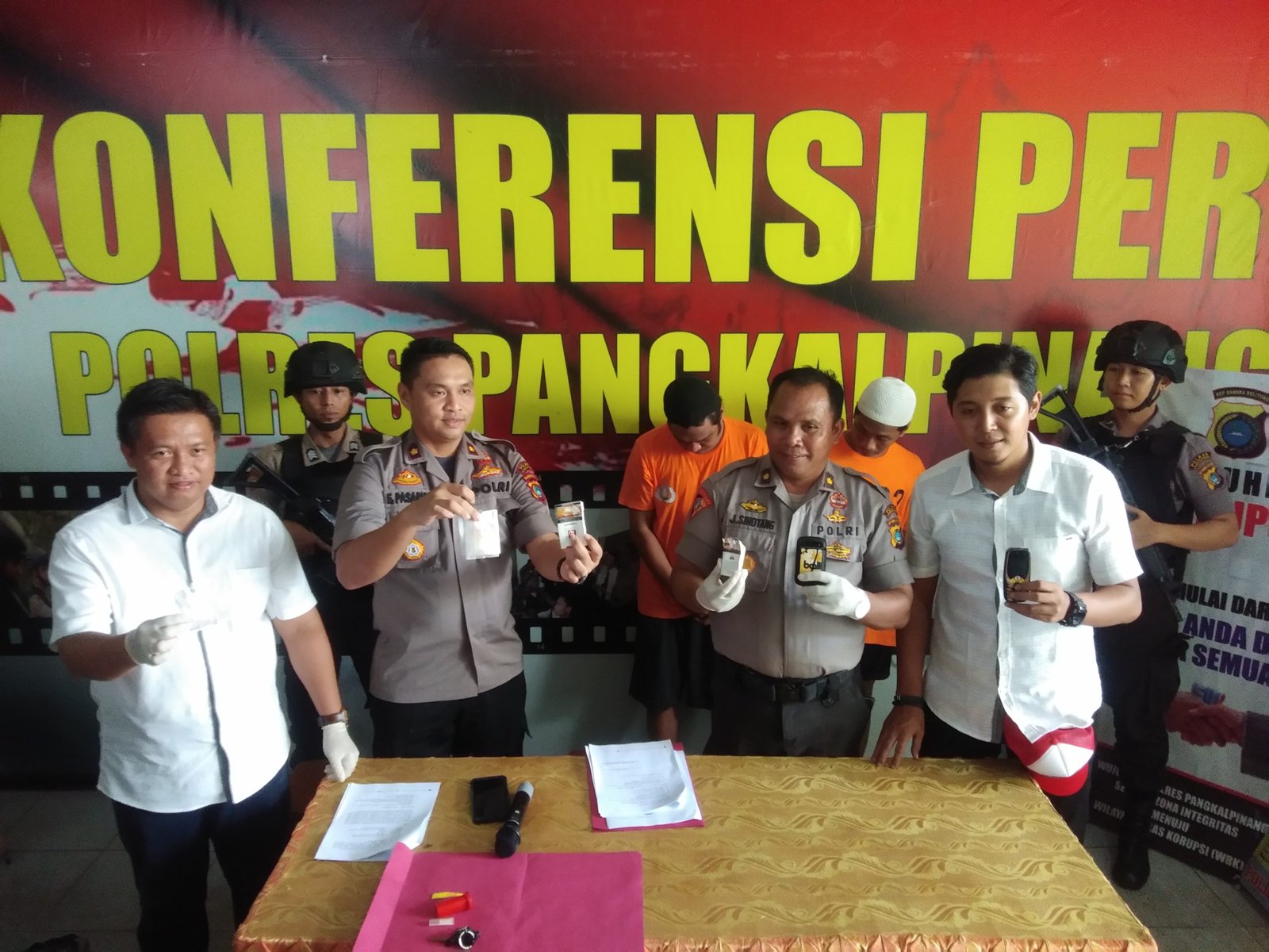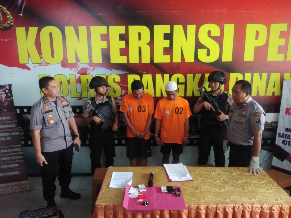 Wakapolres Pangkalpinang, Kompol Erlichson Pasaribu didampingi Kabag Ops Polres Pangkalpinang, Kompol Jadiman Sihotang seizin Kapolres mengatakan, kedua pelaku di amankan pada Selasa (07/01/20) sekira pukul 20:00 wib di Jalan Yos Sudarso Kelurahan Gabek II Kota Pangkalpinang.