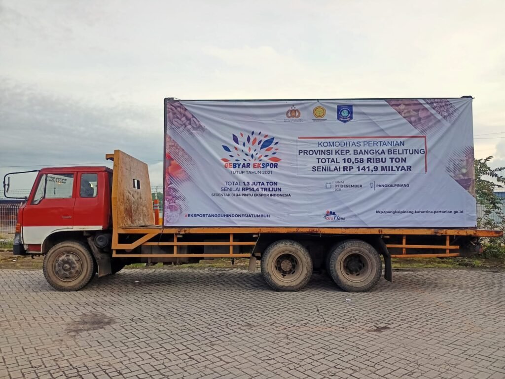 PANGKALPINANG,ERANEWS.CO.ID -– Kementerian Pertanian melalui Badan Karantina menutup akhir tahun 2021 dengan melakukan ekspor serentak di 34 pintu ekspor dengan tajuk gebyar ekspor gerakan tiga kali lipat ekspor (Gratieks). Salah satu pintu ekspor tersebut yaitu Provinsi Kepulauan Bangka Belitung (Babel) melalui Pelabuhan Pangkal Balam.