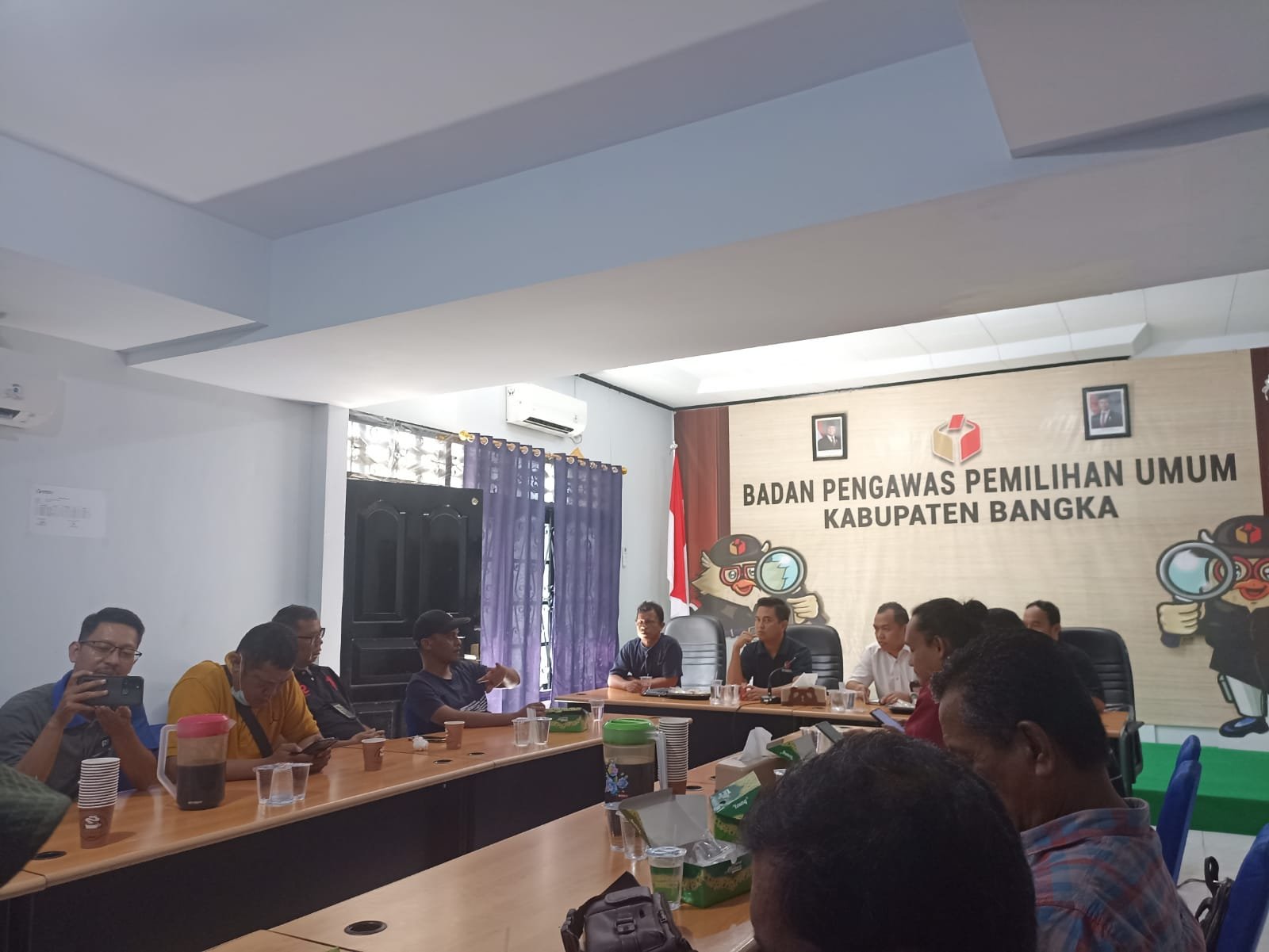 tahapan pencalonan Bupati dan Wakil Bupati Bangka, Bawaslu Bangka menggelar Coffee Morning Discussion pengawasan daftar pemilih sementara dan pendaftaran bakal pasangan calon Bupati dan Wakil Bupati Bangka Ulang Tahun 2025, pada Jumat (16/5/2025) di ruang rapat Kantor Bawaslu Bangka.