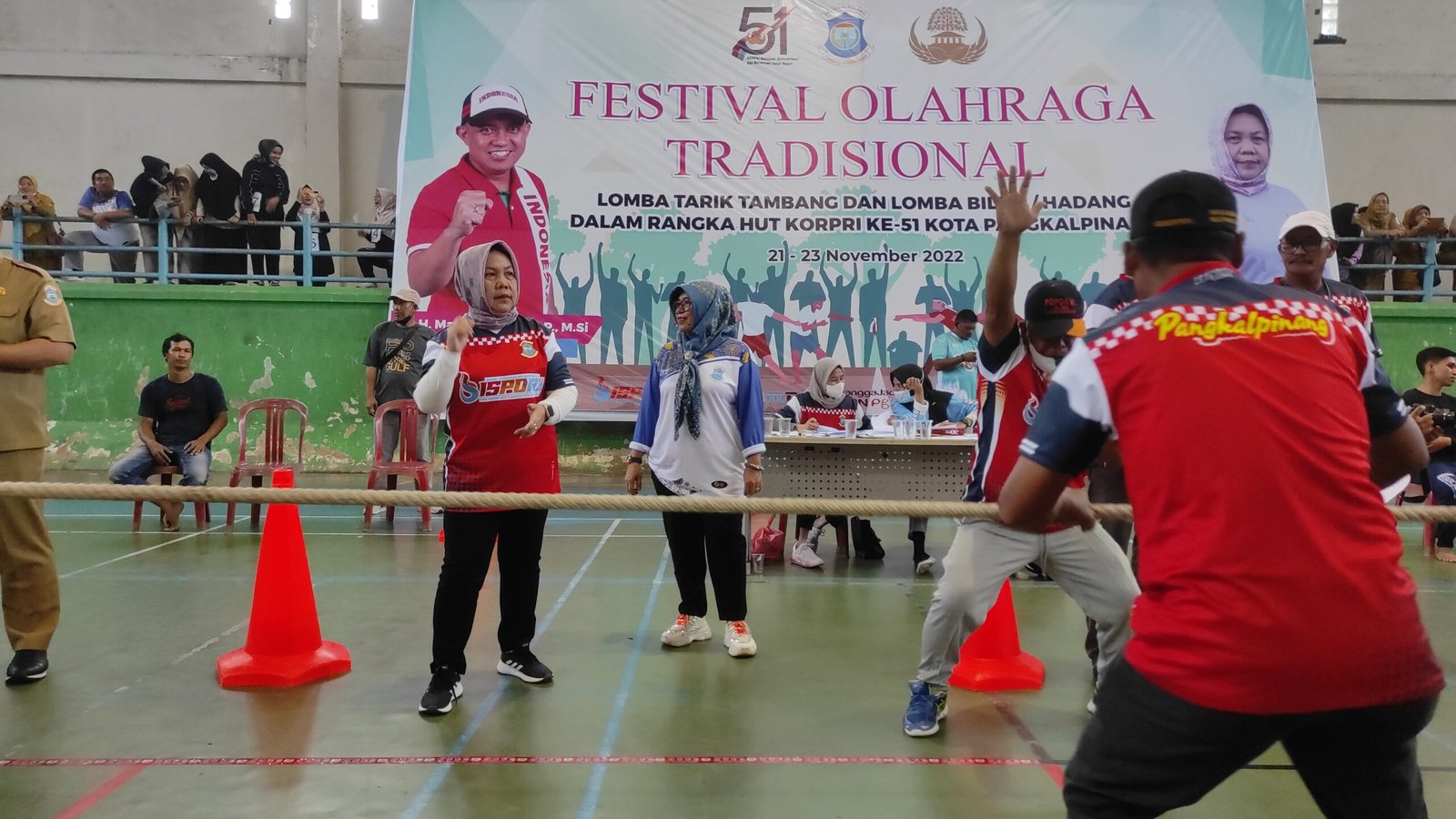 PANGKALPINANG, ERANEWS.CO.ID — Pemerintah Kota Pangkalpinang menggelar Festival Olahraga Tradisional tarik tambang dan lomba bilun / hadang dalam rangka memperingati HUT Korpri Ke  51 bertempat di GOR Depati Bahrein Kacang Pedang, Senin (21/11/22).
