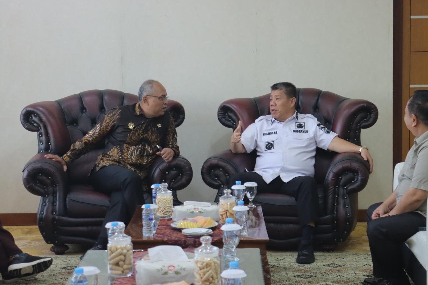 Saat di Ruang VVIP Bandara Depati Amir Pangkalpinang, Gubernur Hidayat bersama Letjen Nugroho Sulistyo Budi berbincang banyak hal sembari menikmati kudapan yang disediakan. Pada kesempatan itu, Gubernur mengucapkan terima kasih atas kunjungan Kepala BSSN ke Babel.
