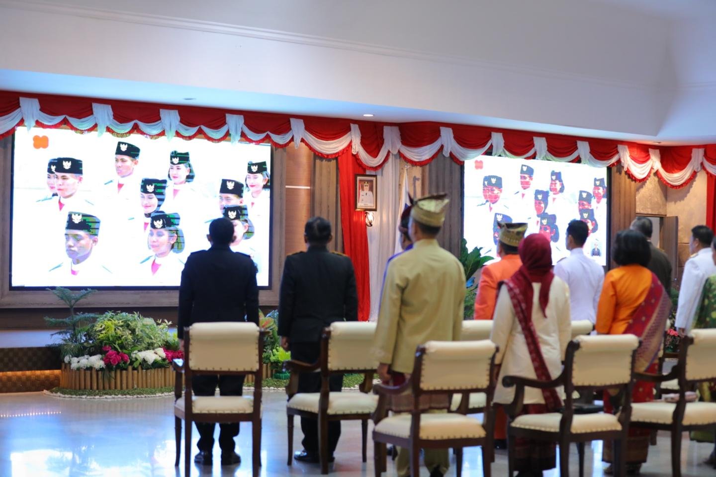 PANGKALPINANG, ERANEWS.CO.ID — Gubernur Kepulauan Bangka Belitung (Babel) Hidayat Arsani, mengikuti Upacara Detik-detik Proklamasi Kemerdekaan Republik Indonesia ke-80 secara virtual bertempat di Ruang Pasir Padi Kantor Gubernur Babel yang di siarkan langsung,Minggu (17/8/2025)