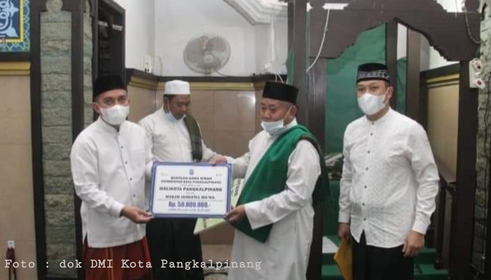 Kegiatan dilanjutkan dengan pemberian dana hibah Pemerintah Kota Pangkalpinang oleh Walikota Pangkalpinang, Maulan Aklil (Molen) kepada pengurus Masjid Jannatul Ma’wa.