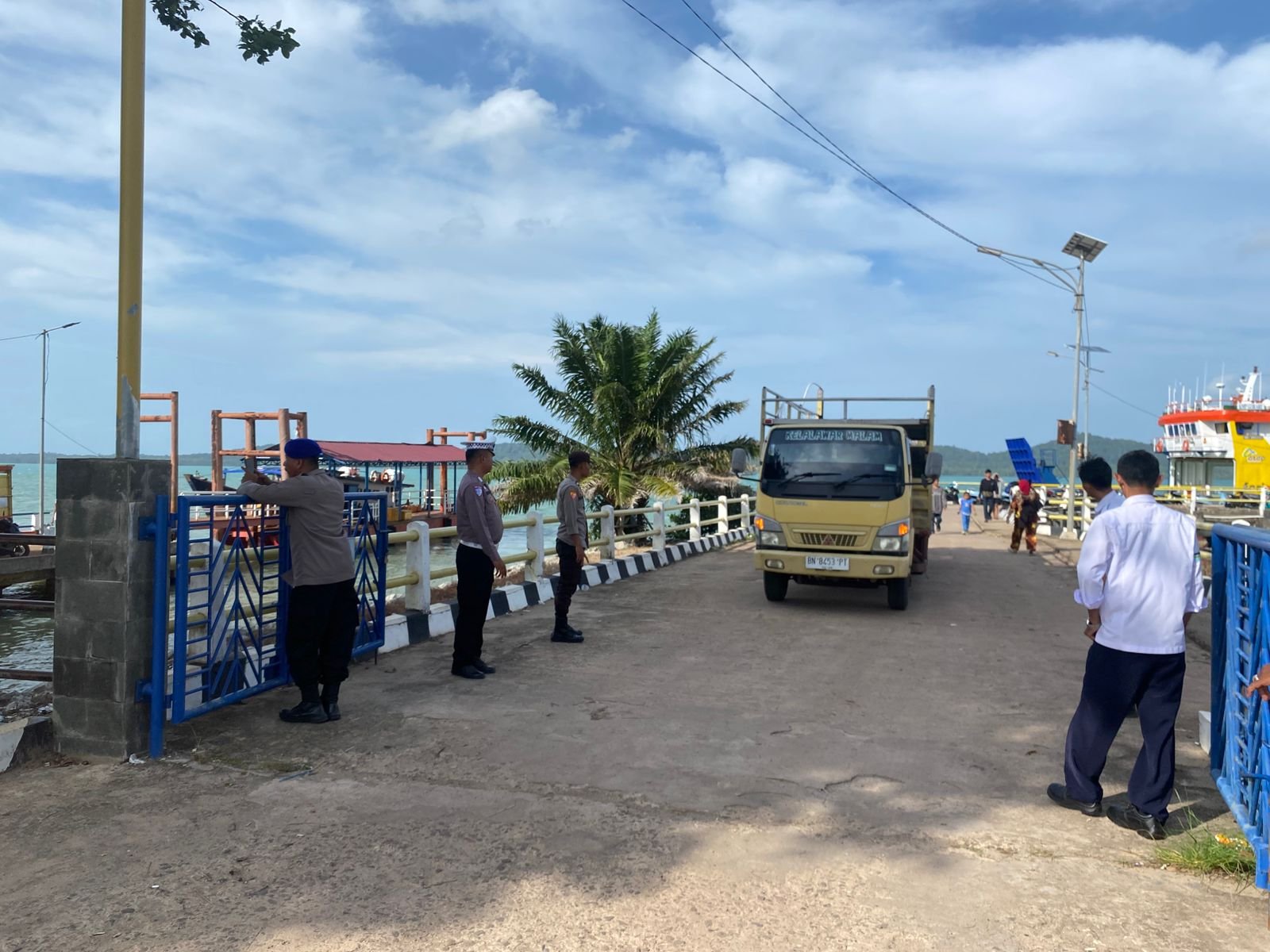 TOBOALI, ERANEWS.CO.ID- Personil Pos Pengamanan Pelabuhan Sadai Ops Lilin Menumbing 2024 melaksanakan pengamanan dan pelayanan keberangkatan serta kedatangan kapal dari dan ke Belitung di Pelabuhan Sadai Kabupaten Basel.