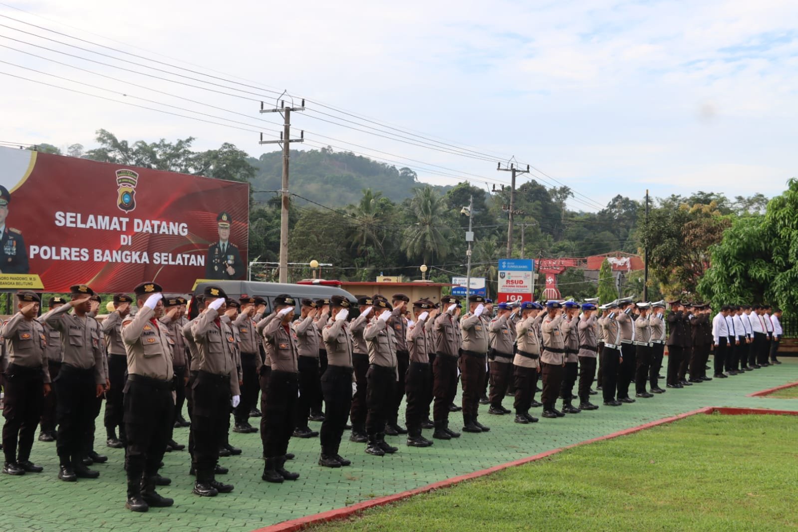 Kegiatan yang berlangsung khidmat ini dihadiri Wakapolres Kompol Surya Dharma Putra, Pejabat Utama (PJU) Polres, seluruh personel, serta Pegawai Harian Lepas (PHL) di lingkungan Polres Bangka Selatan.