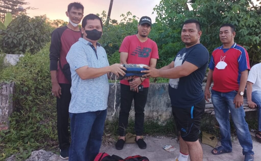 Hadir dalam kegiatan penyerahan bantuan peralatan olahraga tersebut Pelatih Club PKDP,Dedi, Ketua, luvi serta Penasehat PKDP, Andri dan Samsul Rizal.