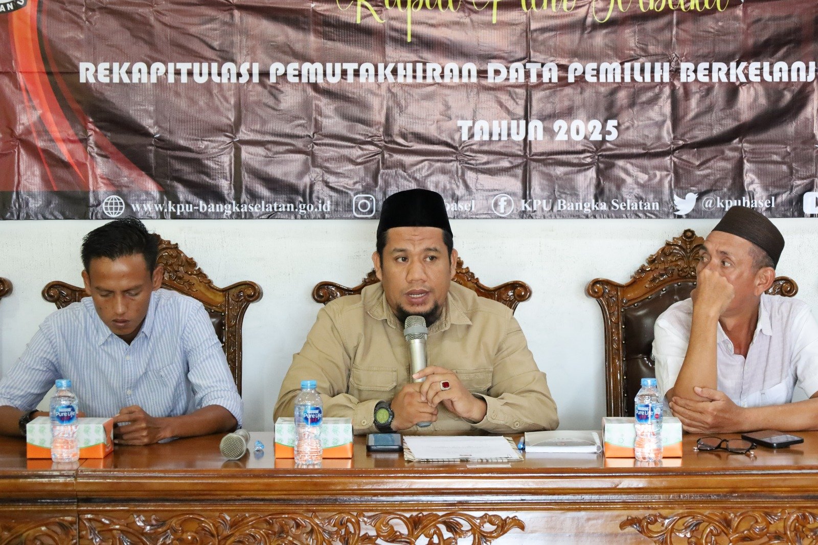 ”Tadi kami melaksanakan rapat pleno terbuka rekapitulasi pemutakhiran data pemilih berkelanjutan triwulan IV,” ujar Rahmad Nadi, yang menjabat sebagai Kepala Divisi Perencanaan, Data, dan Informasi KPU Kabupaten Bangka Selatan, usai kegiatan pada Senin (8/12/2025(.
