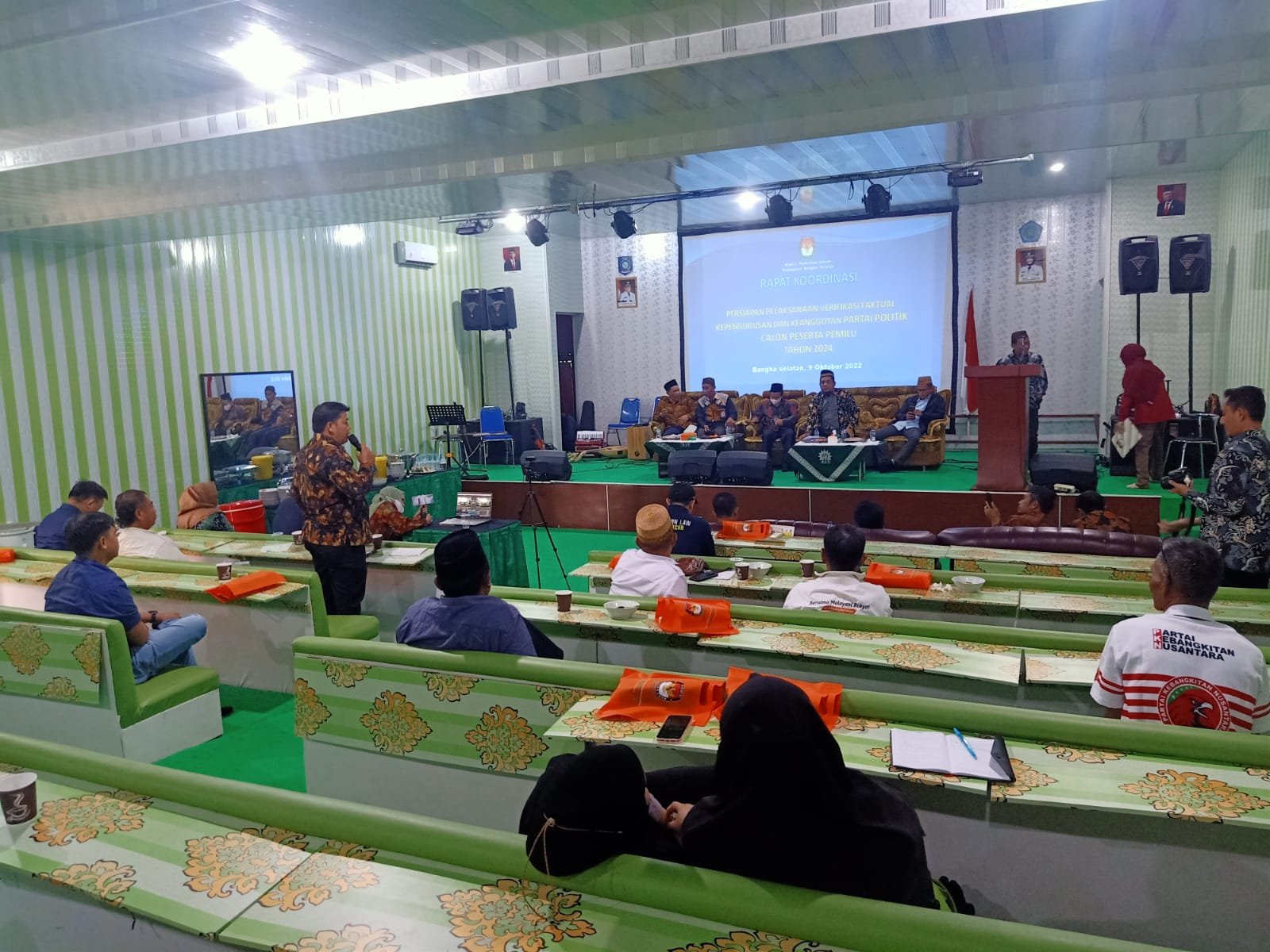 TOBOALI, ERANEWS.CO.ID- Komisi Pemilihan Umum (KPU) Kabupaten Bangka Selatan, melaksanakan rapat koordinasi (Rakor) verifikasi faktual kepengurusan, kantor dan keanggotaan partai politik calon peserta pemilu 2024 di Gedung Seni SMA Muhammadiyah Toboali, Minggu (9/10/2022).
