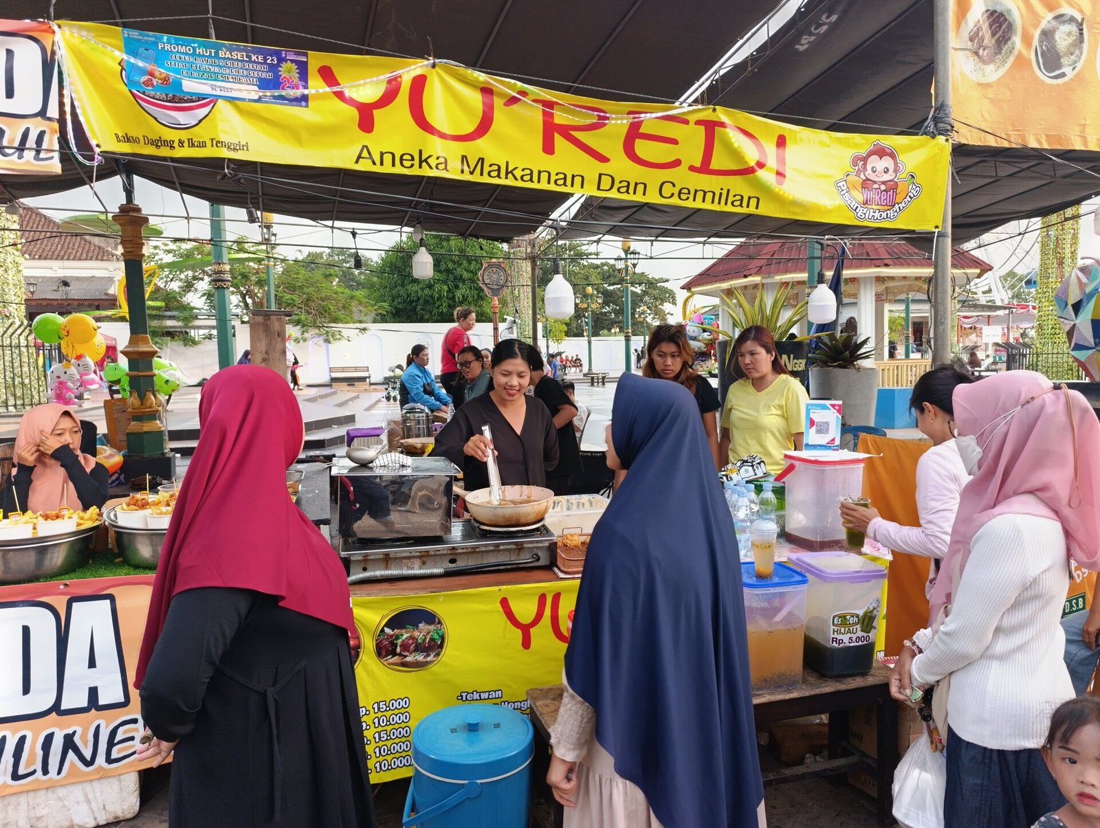 Salah satu lapak yang paling menyedot perhatian adalah Yu’Redi. Berdasarkan pantauan awak media di lokasi, antrean warga tampak memanjang demi mencicipi berbagai menu yang ditawarkan.