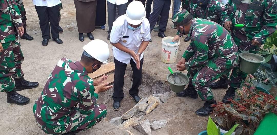TOBOALI, ERANEWS.CO.ID — Bupati Bangka Selatan, DR Ir H Justiar Noer melaksanakan peletakan batu pertama pembangunan Markas Komando Distrik Militer (Makodim) di Desa Bikang, Kecamatan Toboali, Kabupaten Bangka Selatan, Rabu (23/09/20).