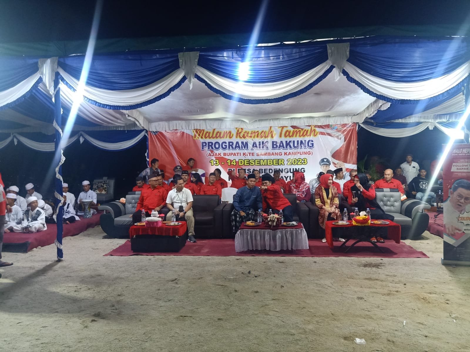PAYUNG, ERANEWS.CO.ID- Malam tamah Program Ajak Bupati Kite Sambang Kampung (Aik Bakung) Riza-Debby bersama jajarannya di Desa Bedengung berlangsung meriah dan banyak masukan dari masyarakat, Kamis (14/12/2023).