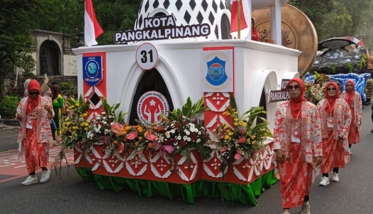 Mobil hias dari Dekranasda Kota Pangkalpinang ini pun diiringi oleh pengiring yang menggunakan baju batik motif nol kilometre yang merupakan batik khas Kota Pangkalpinang. Parade ini disaksikan langsung oleh Iriana Joko Widodo yang menjadi tamu kehormatan di panggung utama.
