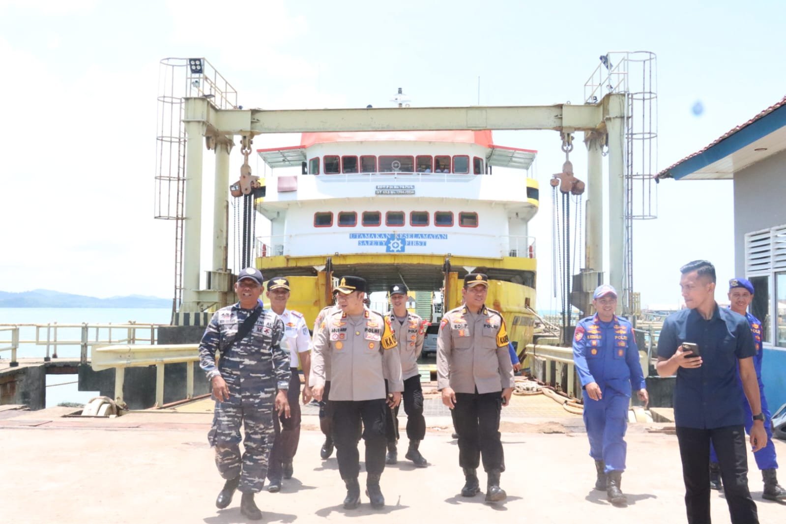 ​Didampingi oleh Kabag Ops, Kasat Polairud, serta perwakilan dari TNI AL dan Dinas Perhubungan, Kapolres memeriksa secara detail sarana dan prasarana yang akan digunakan untuk melayani masyarakat selama arus mudik dan balik.