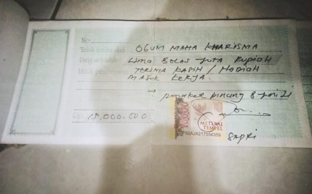 “Barang bukti yang kita amankan berupa 1 lembar kwitansi senilai Rp 15 juta,” tutupnya.