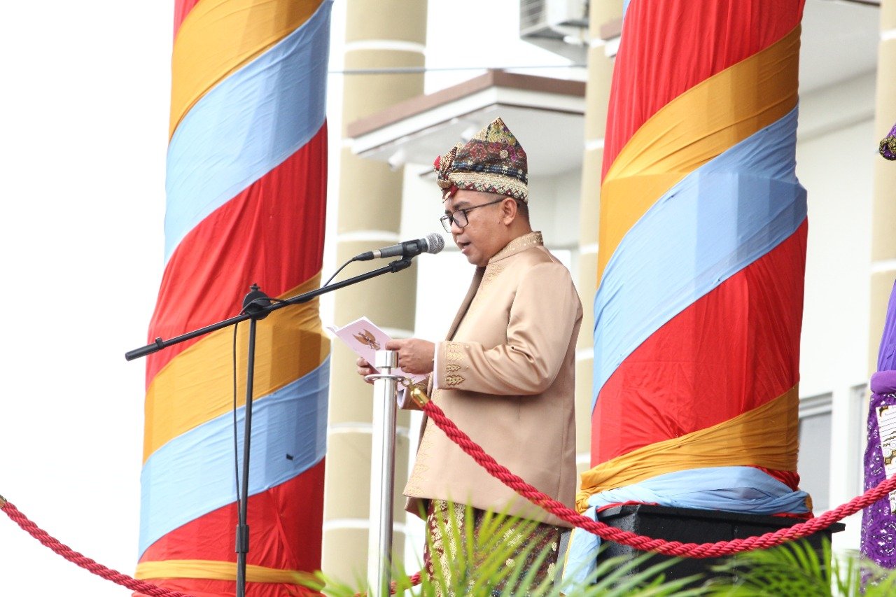 PANGKALPINANG, ERANEWS.CO.ID — Pemerintah Kota Pangkalpinang menggelar Upacara Peringatan Hari Jadi Kota Pangkalpinang ke 265 Tahun 2022 bertempat di halaman Kantor Wali Kota Pangkalpinang, Sabtu (17/09/22). Bertindak sebagai Inspektur Upacara Wali Kota Pangkalpinang, Maulan Aklil (Molen).