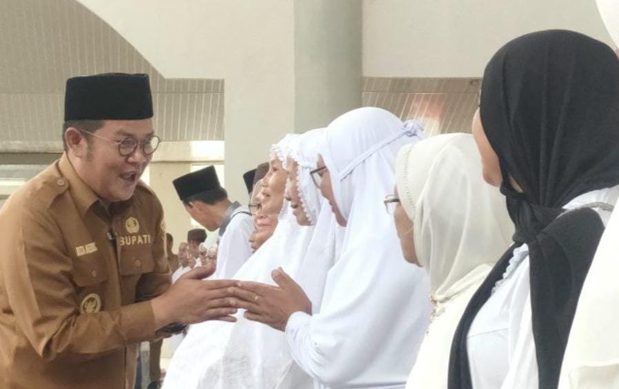 Bupati Riza mengucapkan selamat kepada seluruh jamaah haji yang sudah memiliki kesempatan untuk diberangkatkan ke tanah suci dan berharap para jamaah dapat menggapai haji yang mabrur.