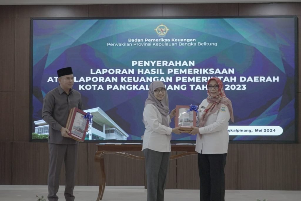 PANGKALPINANG, ERANEWS.CO.ID – Penjabat Wali Kota Pangkalpinang, Lusje Anneke Tabalujan menyerahkan laporan hasil pemeriksaan Badan Pemeriksa Keuangan Republik Indonesia terhadap laporan keuangan Pemerintah Daerah Kota Pangkalpinang tahun anggaran 2023 di Ruang Rapat Kantor BPK RI Perwakilan Bangka Belitung, Rabu (29/5/2024).