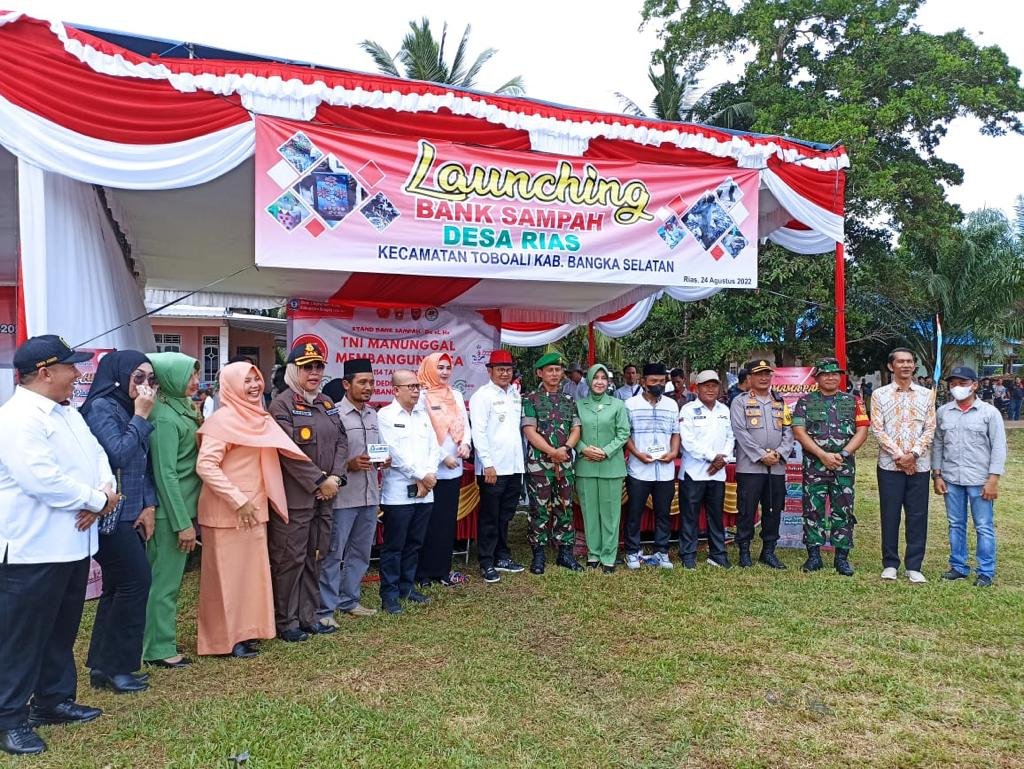TOBOALI, ERANEWS.CO.ID- Dalam penutupan TMMD ke-114 di Desa Rias, Rabu (24/8/2022), Dinas Lingkungan Hidup Kabupaten Bangka Selatan melaunching Bank Sampah di Desa Rias yang di resmikan oleh Bupati Bangka Selatan bersama Danrem 045 Garuda Jaya Bangka Belitung dihadiri oleh jajaran Forkopimda Kabupaten Bangka Selatan.