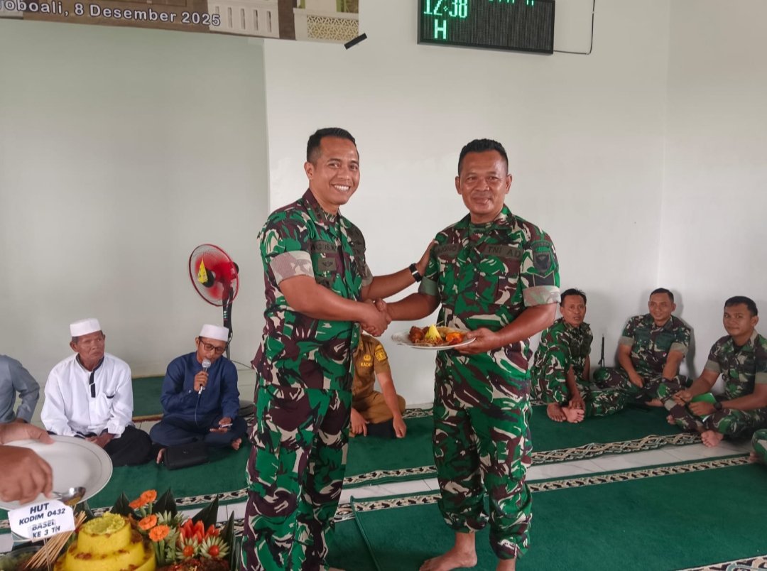 TOBOALI, ERANEWS.CO.ID – Kodim 0432/Bangka Selatan menggelar syukuran dan doa bersama dalam rangka memperingati Hari Ulang Tahun (HUT) ke-3 satuan, Senin (8/12/2025). Kegiatan berlangsung sederhana di Musala Al-Basith Makodim, Desa Bikang, Kecamatan Toboali.