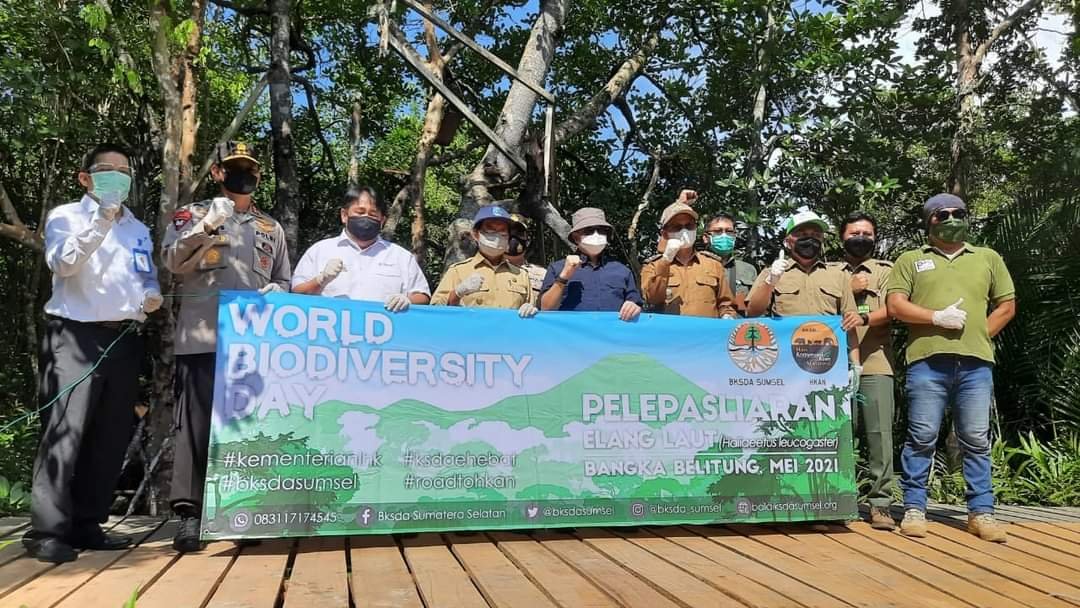BANGKA BELITUNG, ERANEWS.CO.ID — Direktur Jenderal Konservasi Sumber Daya Alam dan Ekosistem (Dirjen KSDAE) Kementerian Lingkungan Hidup dan Kehutanan (LHK) bersama dengan Kapolda Kepulauan Bangka Belitung (Kep. Babel), Dirjen Penegakan Hukum LHK, dan Wakil Gubernur Kep. Babel melepasliarkan 2 (dua) pasang Elang Laut Dada Putih (Halieetus leucogaster), pada Senin (24/5) di kawasan Hutan Lindung Mangrove Munjang (areal HKm Gempa 01), Bangka Tengah. Turut serta dalam pelepasliaran ini adalah Bupati Bangka Tengah, dan Direktur Utama PT Timah Tbk.