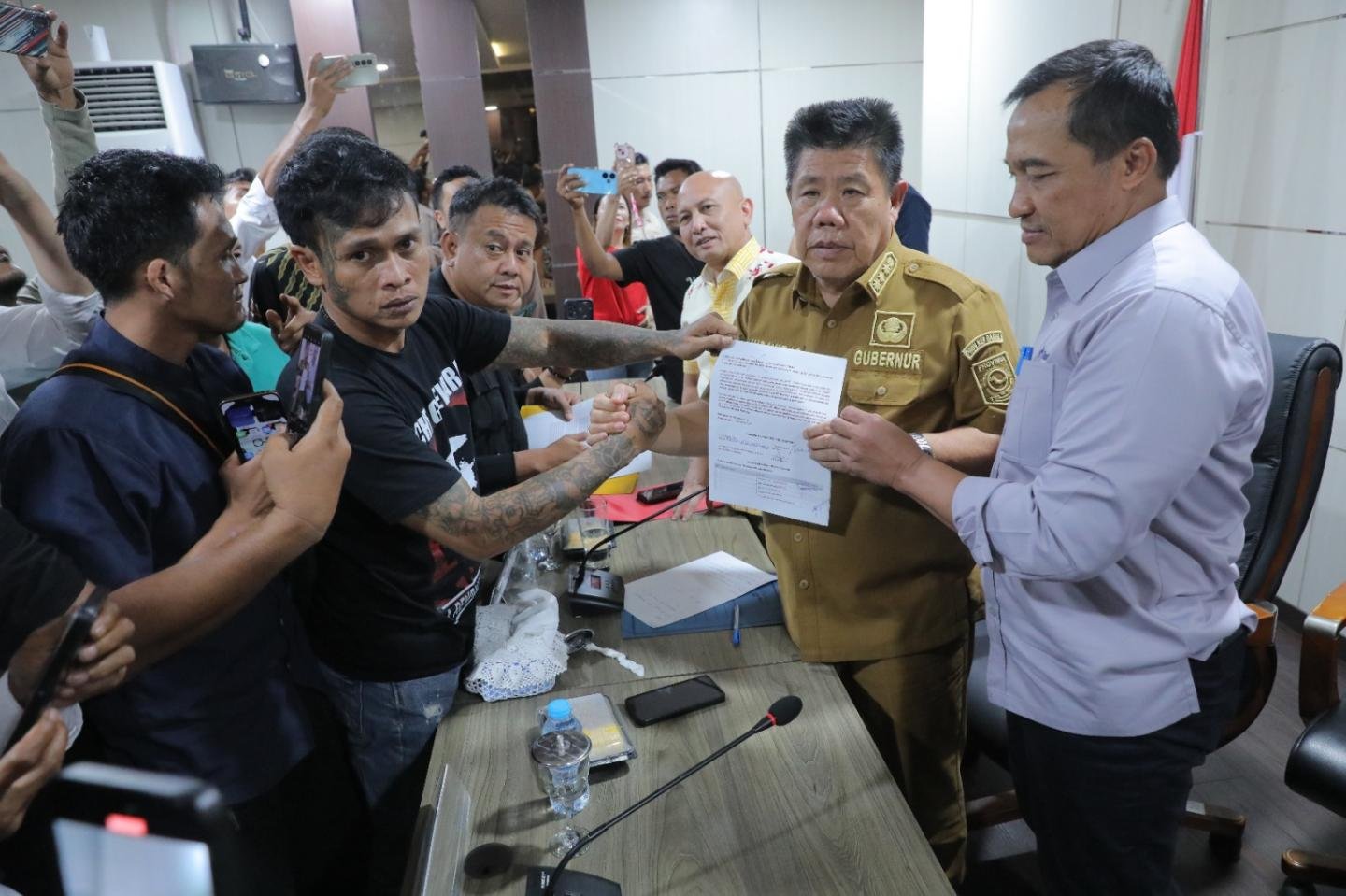 Sementara itu, koordinator aliansi, Batara, menyampaikan apresiasi atas keterbukaan forum yang diinisiasi oleh Gubernur hingga menghasilkan kesepakatan bersama. Ia menegaskan bahwa rencana aksi demonstrasi sejatinya merupakan langkah terakhir apabila tidak ditemukan solusi.