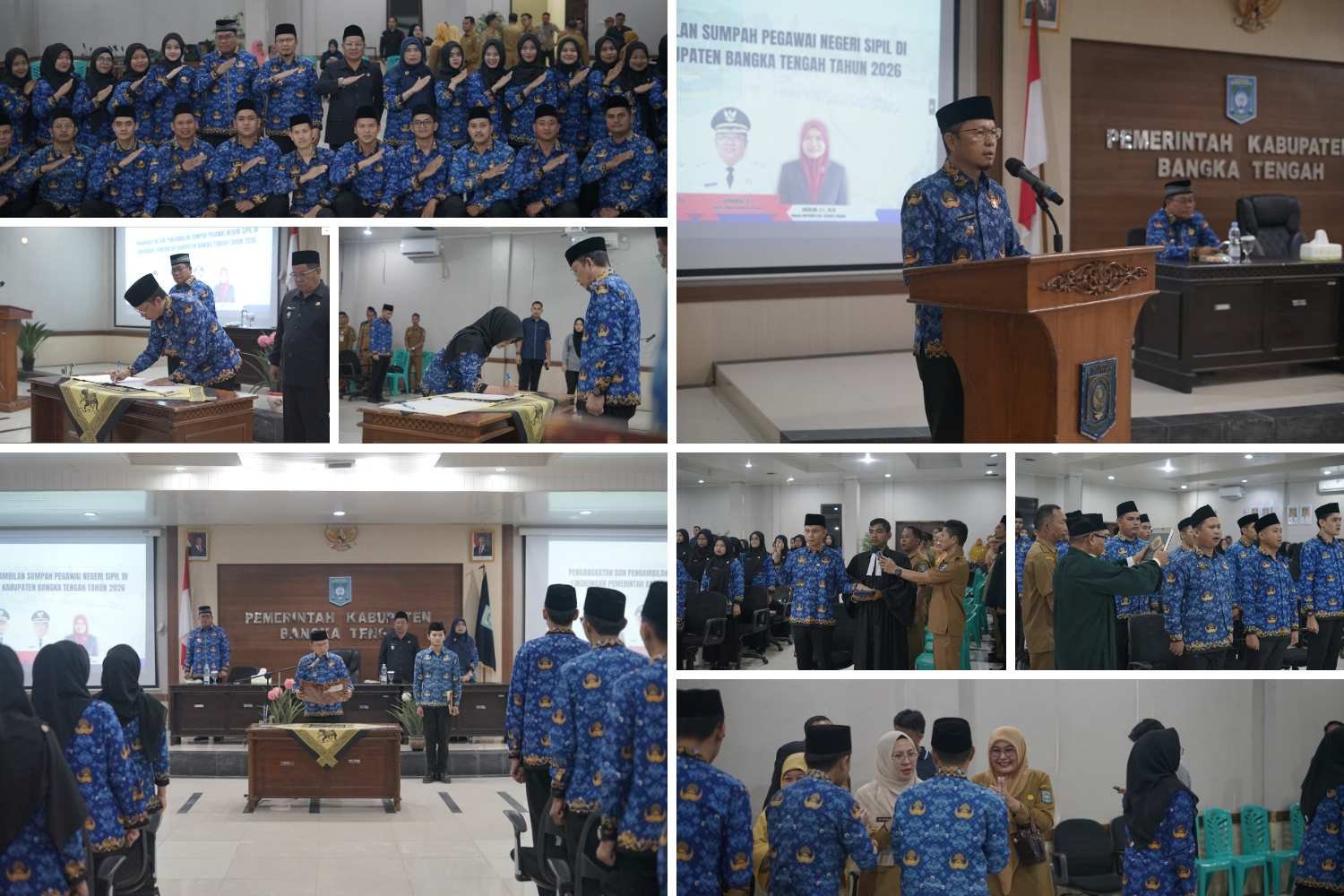 “Selamat kepada PNS yang baru saja diambil sumpahnya. Jalankan amanah ini dengan sebaik-baiknya. Saya percaya, dengan semangat dan tekad yang kuat, saudara mampu menjadi ASN yang berintegritas, profesional, serta memberikan kontribusi nyata bagi kemajuan Kabupaten Bangka Tengah,” tambahnya.