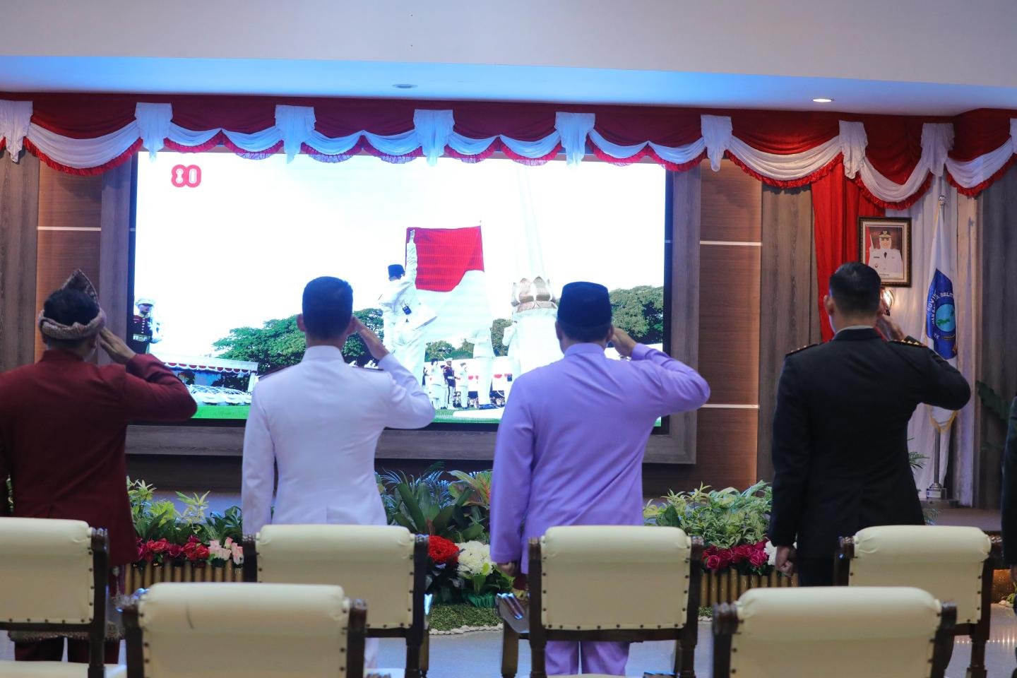Upacara yang digelar di Istana Merdeka, Jakarta tersebut diikuti Pj Sekda Fery Afriyanto bersama jajaran perwakilan Forum Koordinasi Pimpinan Daerah (Forkopimda) di Lingkungan Pemerintah Provinsi (Pemprov) Babel, secara virtual dari Ruang Pasir Padi, Kantor Gubernur Babel.