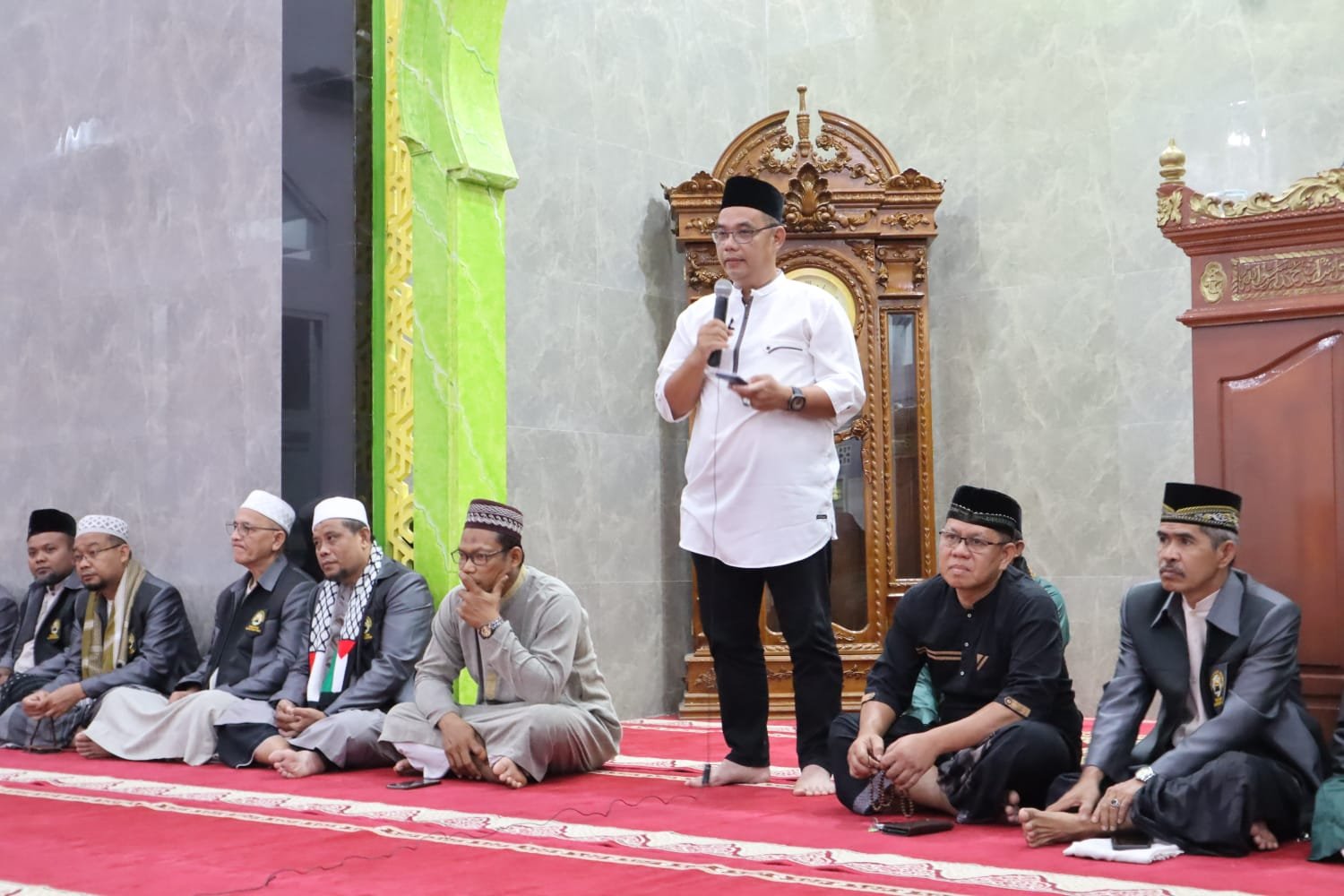 Walikota Pangkalpinang, Maulan Aklil yang diwakili oleh PLT Sekda Kota Pangkalpinang, Miego ST dalam kesempatan itu turut menyampaikan kebahagiaan bisa bertemu dan berjama’ah bersama-sama di Masjid Syuhada.