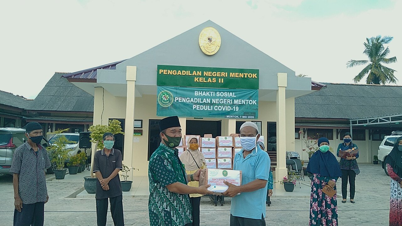 Ketua Pengadilan Negeri (KPN) Mentok Golom Silitonga dalam hal ini menyampaikan pembagian sembako ini merupakan wujud kepedulian Pengadilan Negeri Muntok terhadap masyarakat yang terkena dampak Covid-19 disekitar lingkungan PN Muntok.