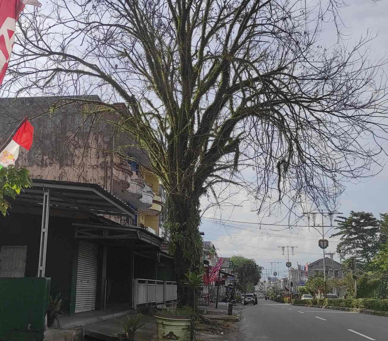 Bahkan pohon tersebut mengancam keselamatan pemilik rumah yang tepat berhadapan dengan pohon mati tersebut.
