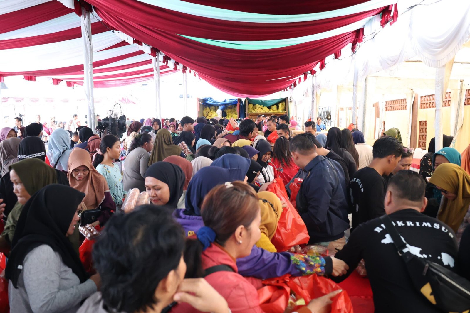 “Hari ini kita melaksanakan bazar murah. Kita menyiapkan 1.000 paket berisikan gula pasir, minyak goreng, ikan kaleng, indomie dan lain-lain. Kalau jual dipasaran, harganya kurang lebih 164 ribu rupiah, namun dijual dibazar ini jadi 100 ribu rupiah,”kata Hendro disela-sela peninjauan bazar murah.