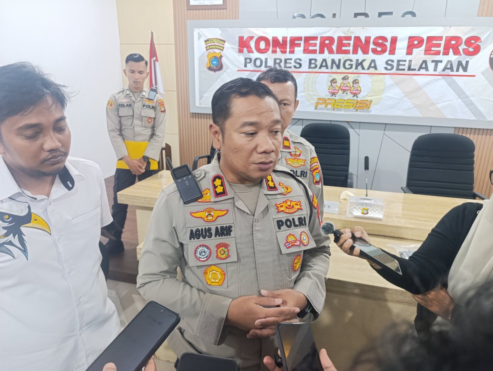 Konferensi pers dipimpin langsung oleh Kapolres Basel AKBP Agus Arif Wijayanto, didampingi Kasat Reskrim AKP Raja Taufik Ikrar Bintani serta Kasi Humas Iptu GJ Budi, di Aula SS Mapolres Basel, Selasa (9/9/2025).