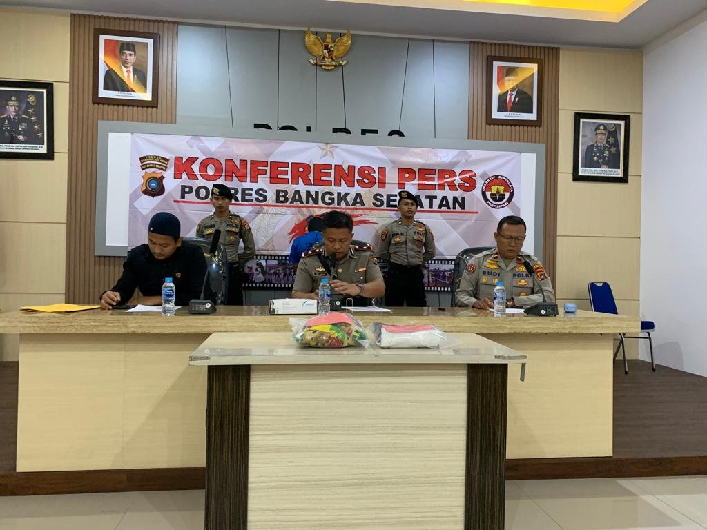 Kapolres Bangka Selatan, AKBP Toni Sarjaka melalui Wakapolres Bangka Selatan, Kompol Hary Kartono didampingi Kasat Reskrim AKP Tiyan Talingga serta Kasi Humas Ipda Guntur Jaya Budi mengungkapkan kasus persetubuhan yang dilakukan
