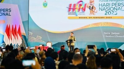 SUMUT, ERANEWS.CO.ID — Presiden Joko Widodo menghadiri Puncak Peringatan Hari Pers Nasional (HPN) Tahun 2023 di Gedung Serbaguna Pemerintah Provinsi Sumatra Utara, Kabupaten Deli Serdang, Kamis, 9 Februari 2023. Dalam sambutannya, Presiden Jokowi mengucapkan selamat Hari Pers kepada seluruh insan pers nasional dan menyampaikan apresiasinya atas perannya bagi bangsa dan negara.