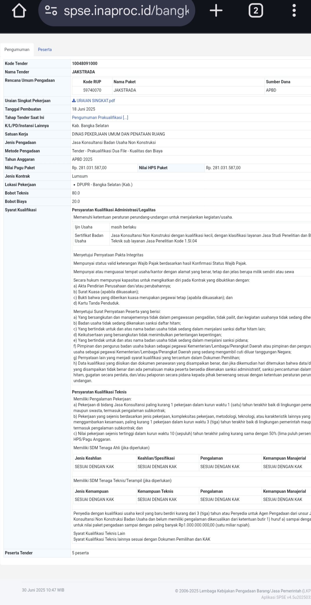 Dengan nilai proyek yang cukup besar, proses tender ini diharapkan dapat berjalan transparan dan menghasilkan penyedia jasa terbaik yang mampu menyelesaikan pekerjaan sesuai standar dan tepat waktu.