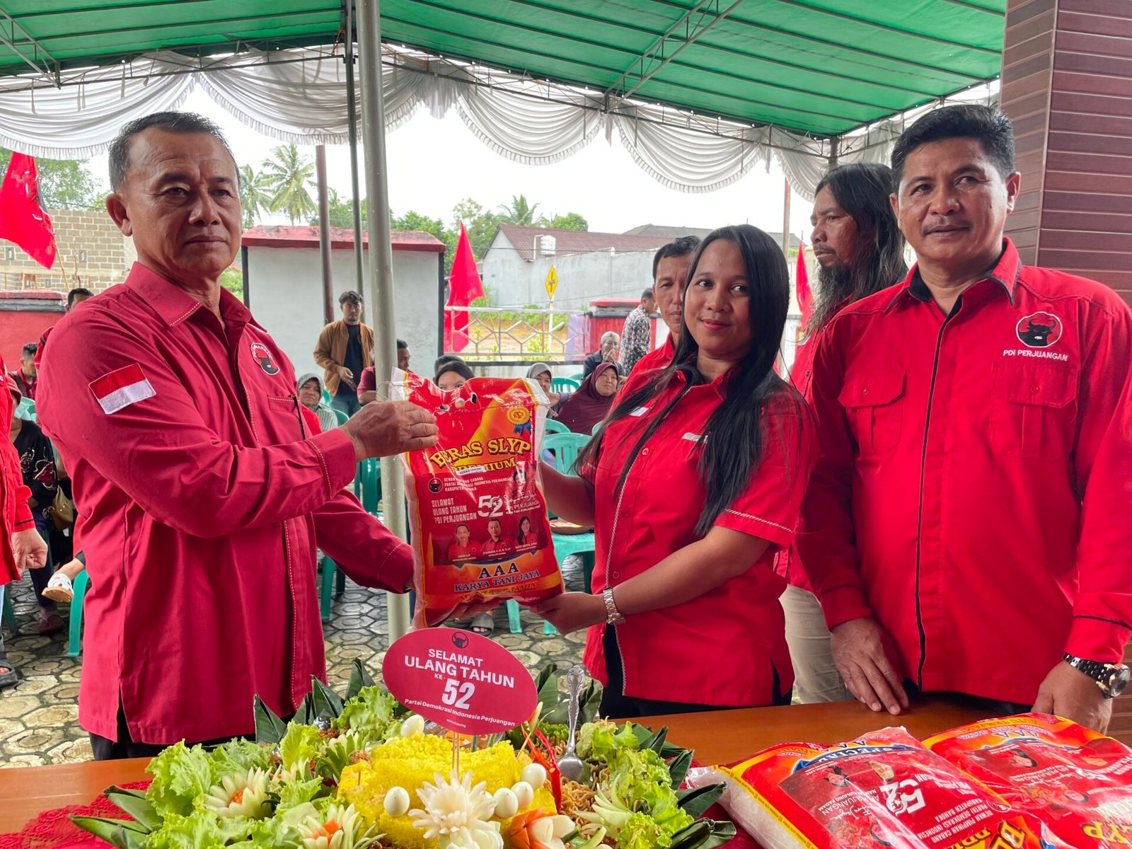 “Di kesempatan yang berbahagia ini, kami seluruh pengurus DPC PDI Perjuangan Bangka mengucapkan terimakasih kepada semua yang hadir dalam rangka merah HUT PDI Perjuangan yang ke 52. Kita ucapkan terimakasih kepada seluruh masyarakat yang selam ini telah memberikan dukungan penuh kepada PDI Perjuangan yang ada di Kabupaten Bangka sehingga bisa 4 kali berturut memenangkan pemilu legislatif di Bangka,” tegasnya.